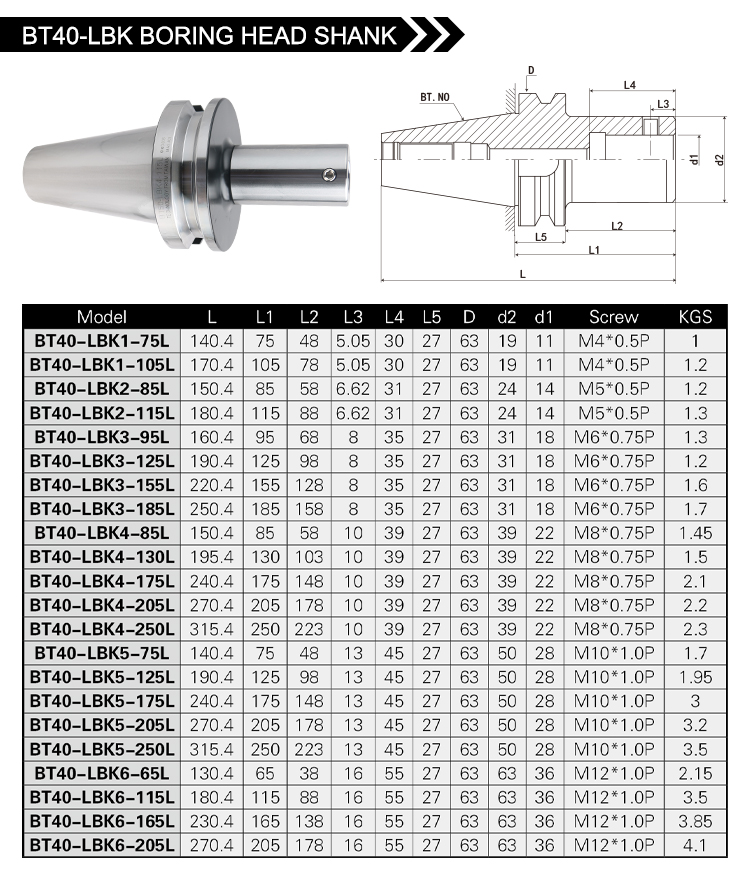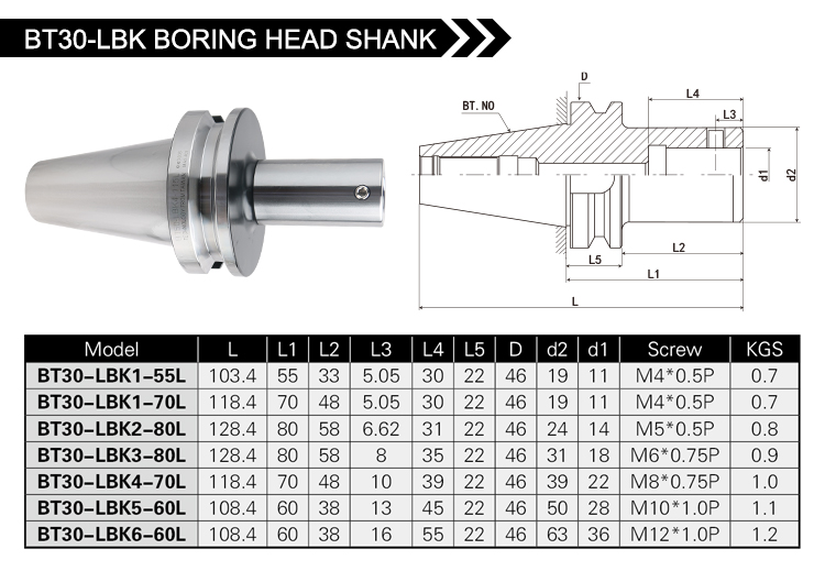 BT30/40-LBK BORING HEAD SHANK